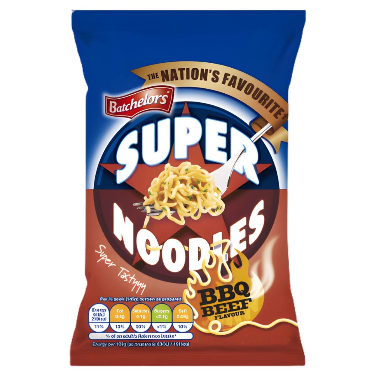 Enjoy a quick, delicious meal with Batchelors Super Noodles BBQ Beef Flavour. These instant noodles pack a smoky, savory punch in every bite, perfect for satisfying your hunger anytime. Ready in minutes, they offer a convenient and tasty solution whether you're at home, work, or on the go. Treat yourself to rich BBQ beef flavour that brings comforting warmth and bold taste in every mouthful.