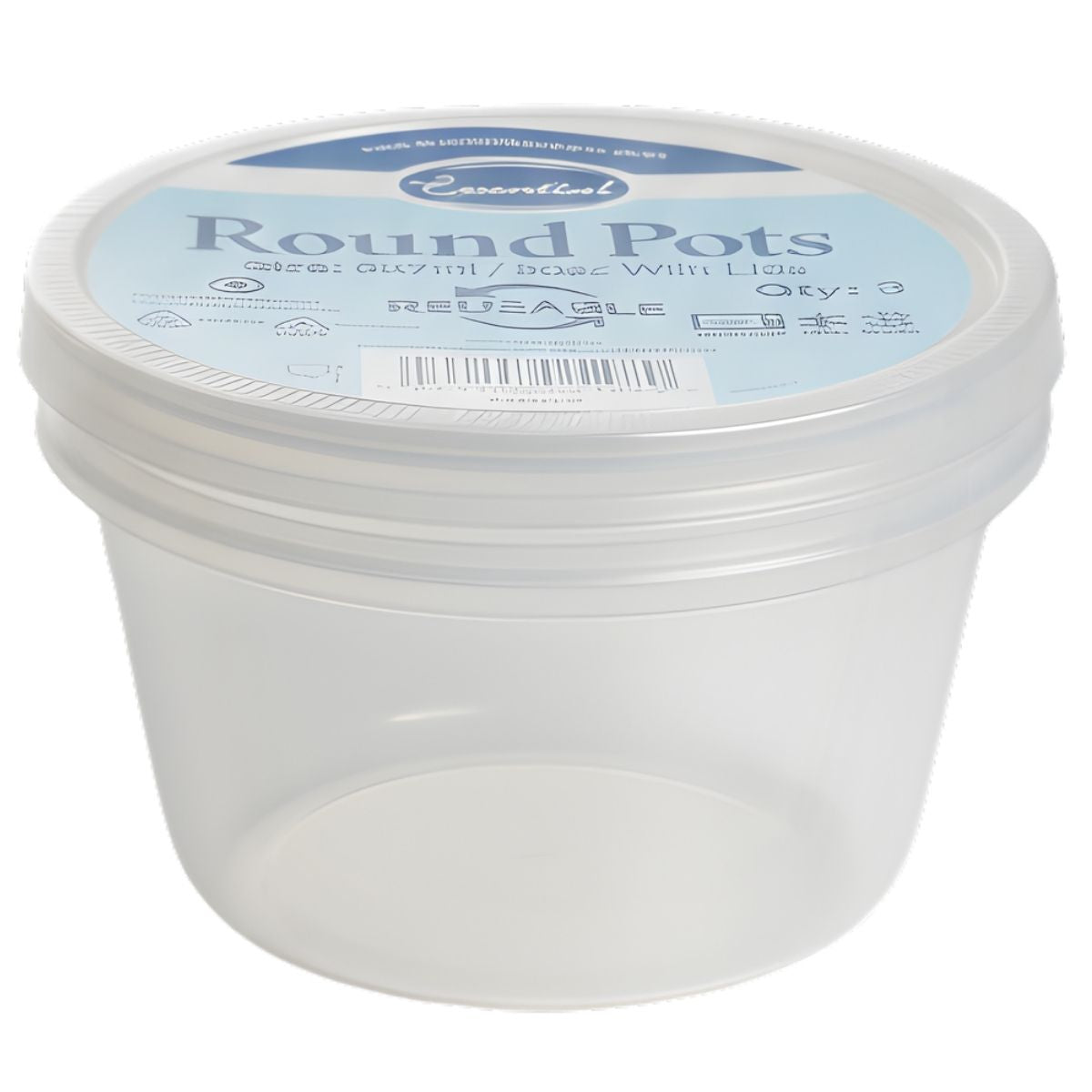 Essential - 3 Round Pots Storage Container Boxes With Lids - 708ml