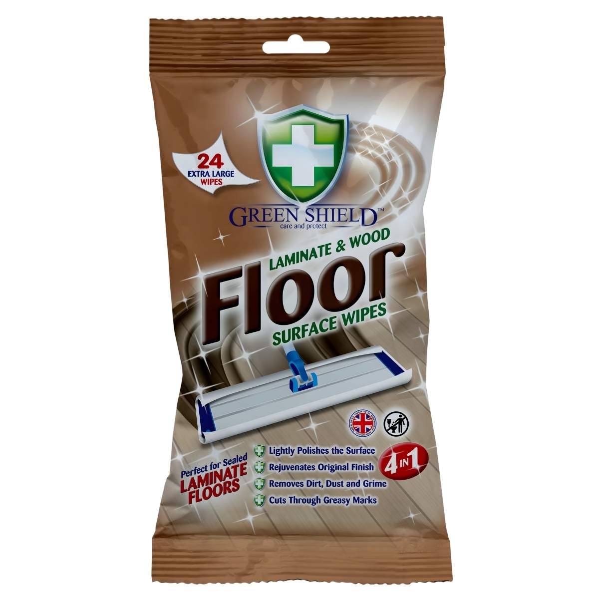 Green Shield - Laminate & Wood Extra Large Floor Wipes - 24 Wipes