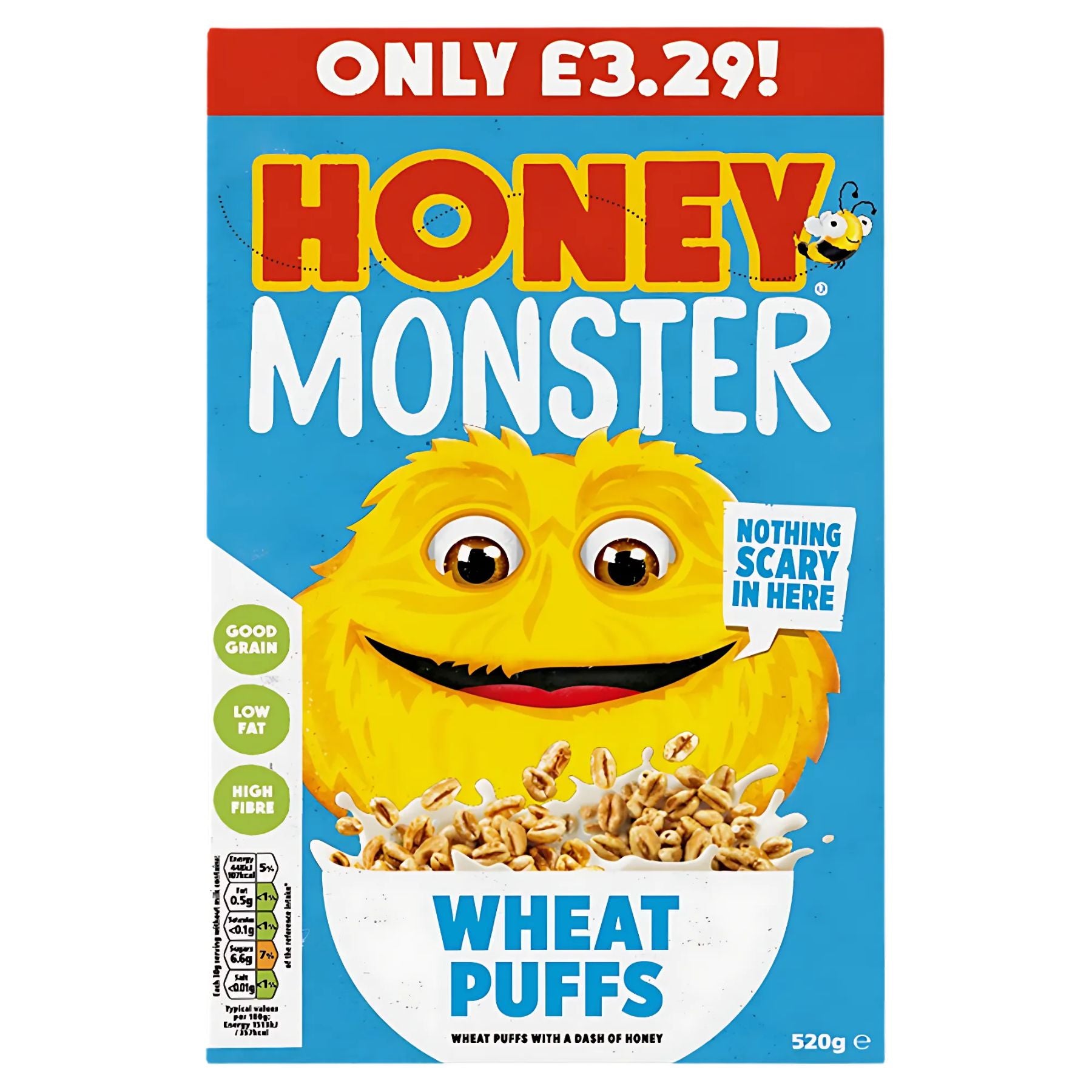 Honey Monster Wheat Puffs combine the natural goodness of puffed wheat with the rich sweetness of sugar and honey for a delightful taste. Fortified with essential vitamins and iron, they offer a nutritious start to your day or a wholesome snack anytime. Enjoy a crunchy, energizing treat that supports your well-being without compromising on flavor. Perfect for the whole family, Honey Monster Wheat Puffs bring both health and happiness to your bowl.