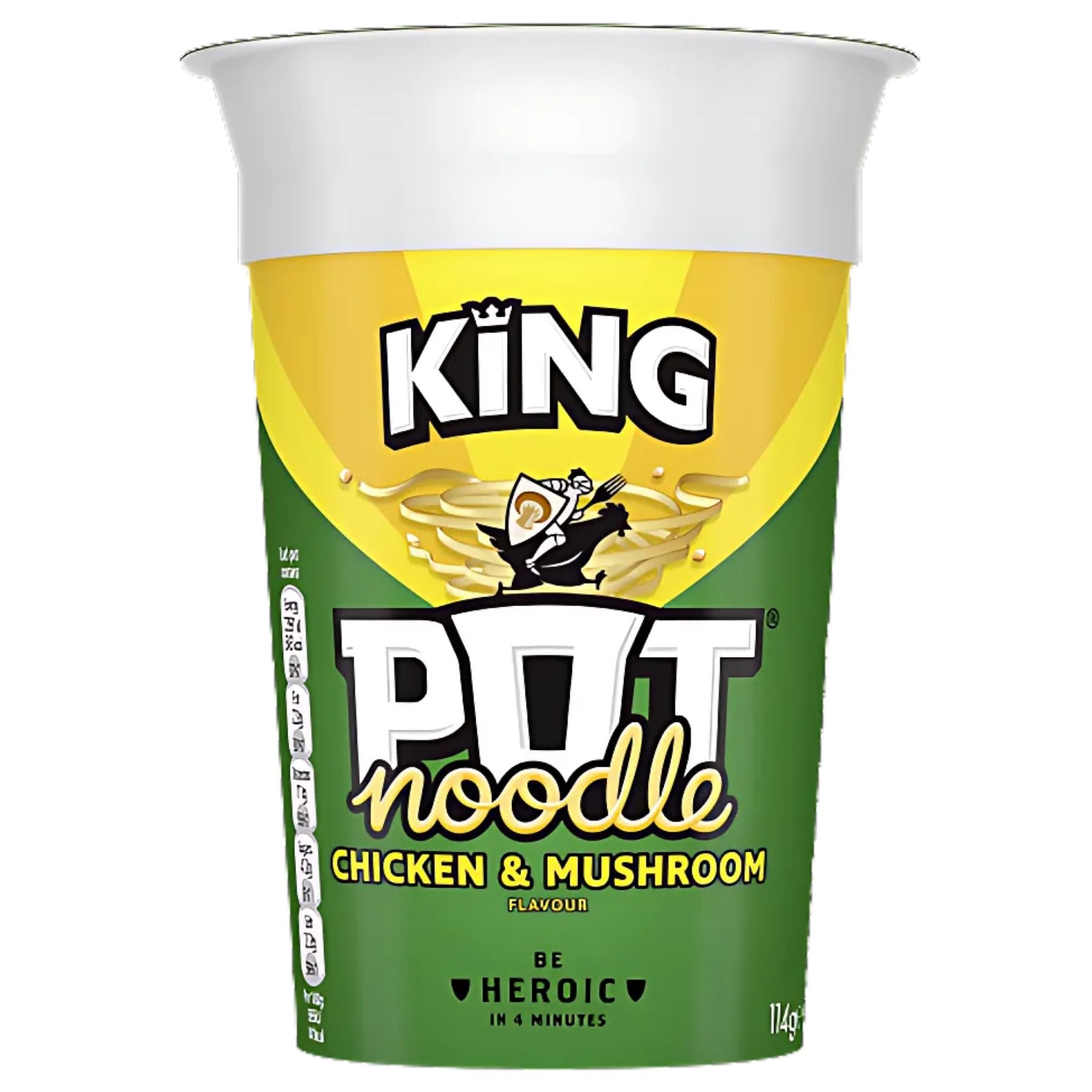 Discover the bold, satisfying taste of King Pot Noodle - Chicken and Mushroom. This 114g pot delivers a hearty blend of tender chicken and rich mushrooms in a convenient, ready-to-eat format. Perfect for a quick meal, it combines savoury flavours with comforting textures that make every bite enjoyable. Ideal for busy days when you want delicious, fuss-free nourishment without compromising on flavor.