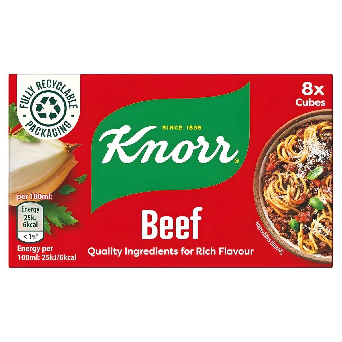 Salt, vegetable fats (palm, shea, Sal), starch, flavourings, sugar, yeast extract, beef fat (3%)[beef fat, antioxidant (extracts of rosemary)], beef stock powder (2%), caramel syrup, onion powder, maltodextrin, parsley, carrots, spices (parsley root powder, celery seeds).
