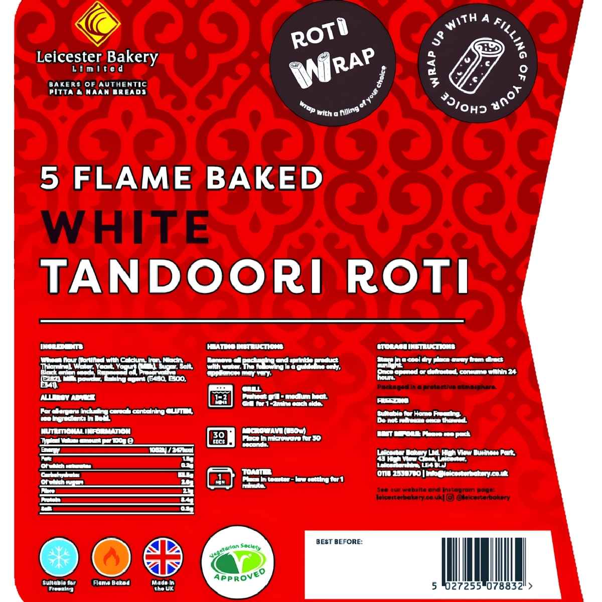 Leicester Bakery - Flame Baked White Tandoori Roti - 6 Pack