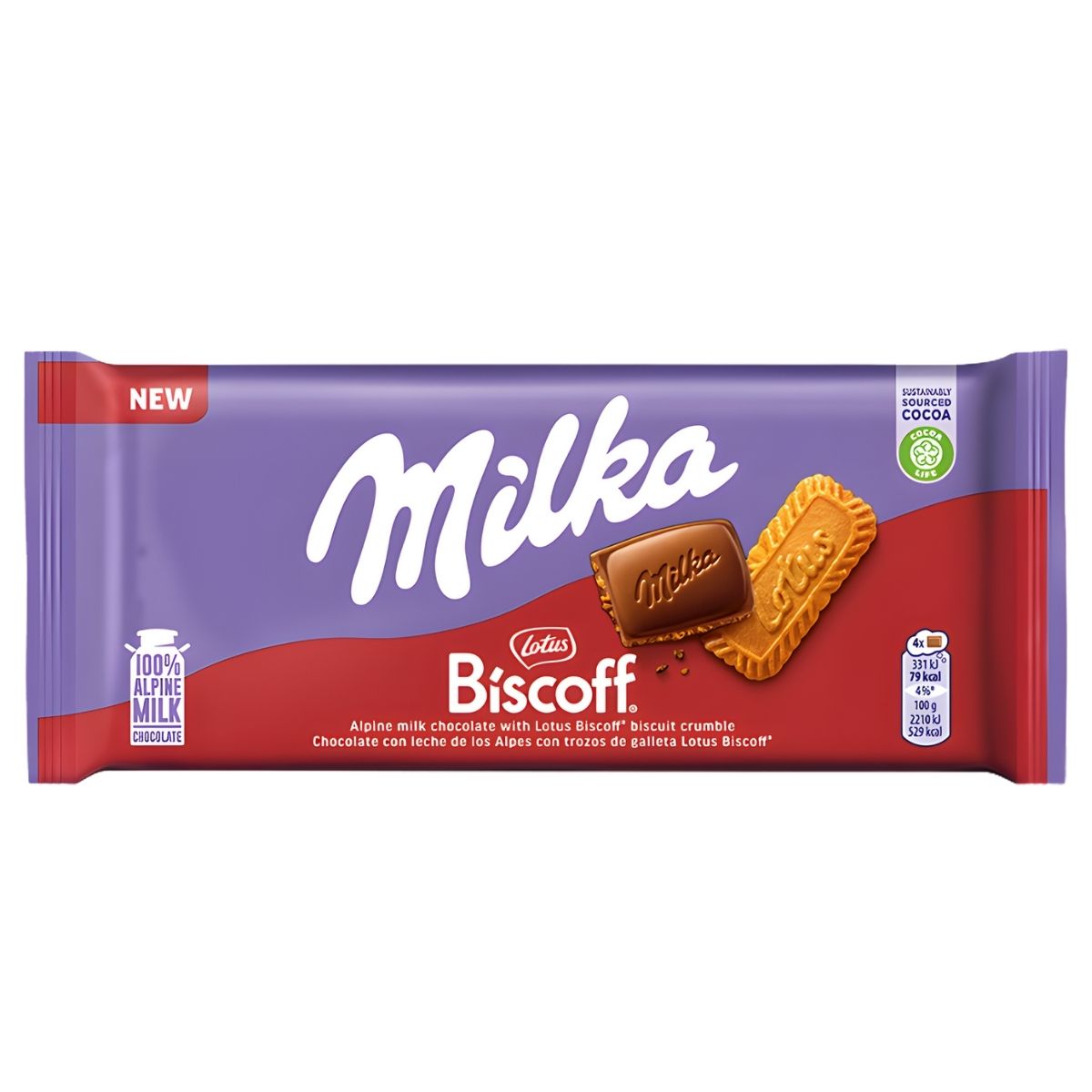 Indulge in the perfect fusion of creamy Milka chocolate and the irresistible caramel-spiced crunch of Biscoff. This 90g bar combines smooth, melt-in-your-mouth chocolate with the distinctive biscuit flavour that biscuit lovers adore. Each bite delivers a delightful contrast of textures—velvety chocolate meeting crispy, golden biscuit pieces. Whether you're treating yourself to an afternoon pick-me-up or sharing a moment of pure indulgence, this premium chocolate bar satisfies cravings for something truly special. A must-try for anyone who loves the classic Biscoff taste elevated by quality chocolate.