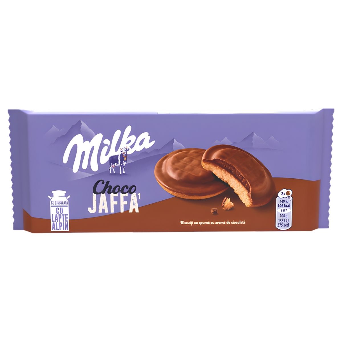 Milka Jaffa Choco Mousse - Biscuit Filled With a Chocolate Flavoured Mousse(46%) With a Layer of Alpine Milk Chocolate(20%).