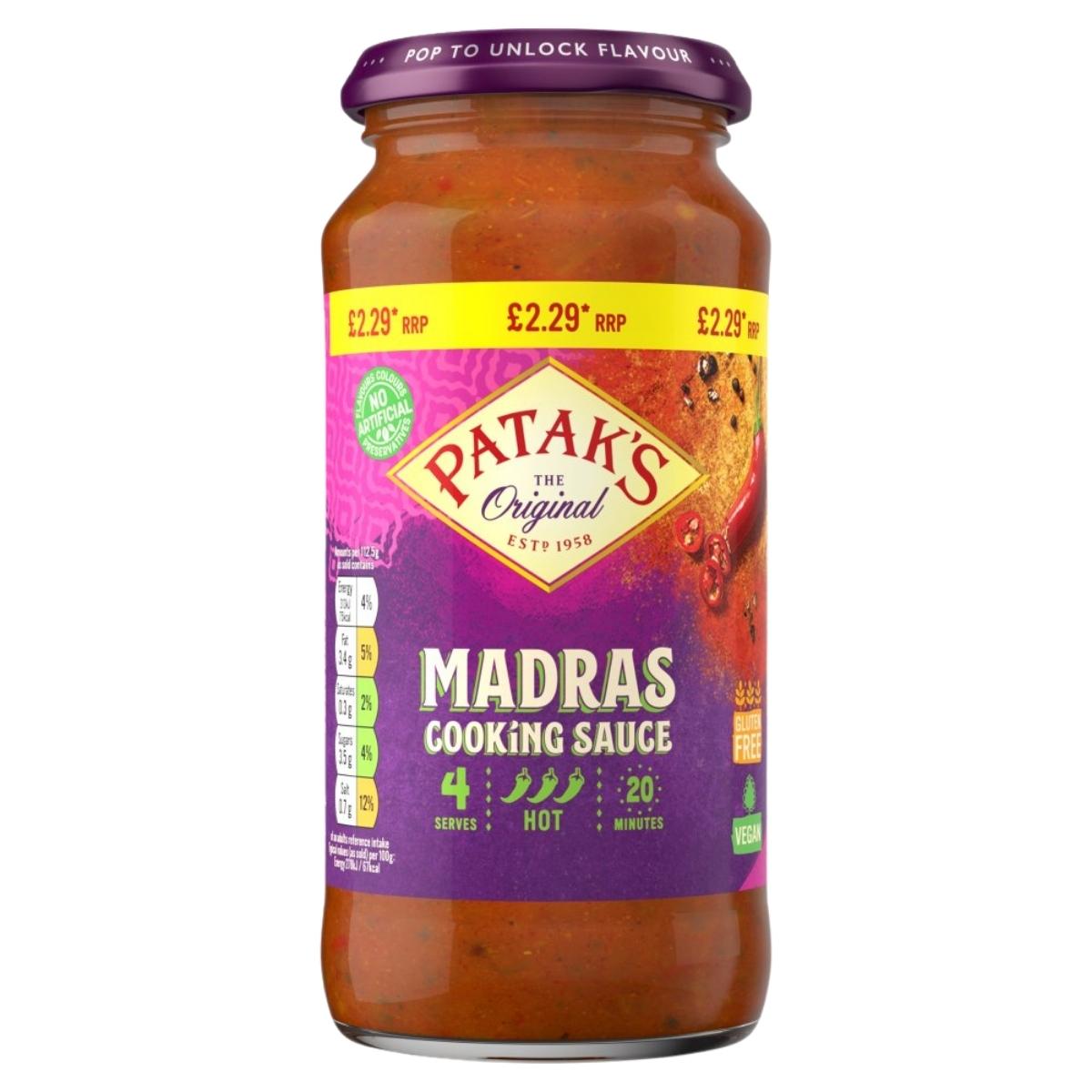Bring authentic Indian heat to your kitchen with Patak's Madras Cooking Sauce. This vibrant 450g jar delivers bold, fiery flavours crafted from a blend of aromatic spices and carefully selected ingredients. Perfect for transforming everyday chicken, lamb, or vegetables into restaurant-quality curries in minutes. Whether you're a spice enthusiast seeking genuine heat or looking to impress dinner guests, this versatile sauce offers the perfect balance of intensity and flavour. Simply add your protein and simmer for an effortless meal that tastes like it's been simmering for hours. Discover why Patak's is trusted by curry lovers across the UK.