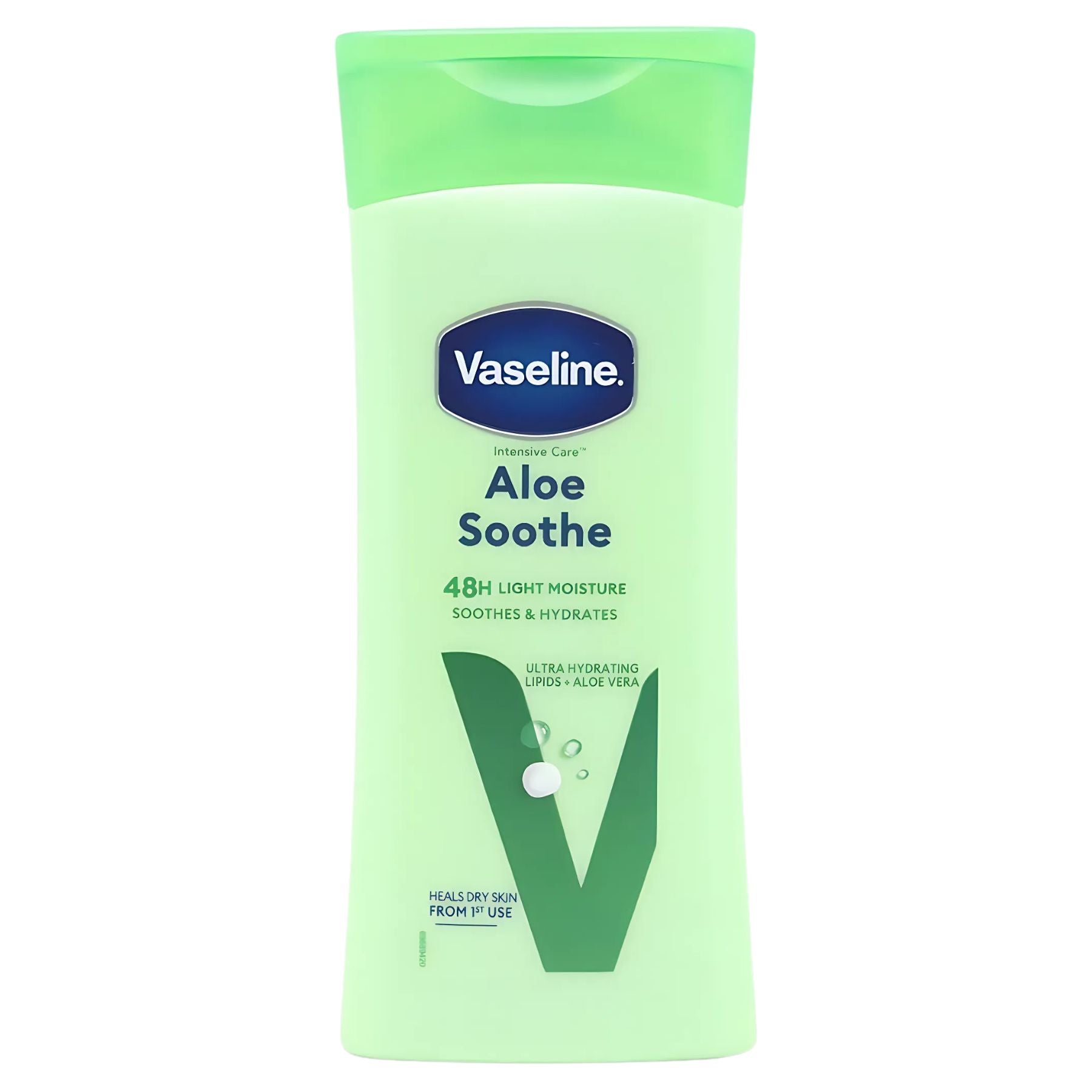 Vaseline Intensive Care Aloe Soothe Body Lotion delivers deep moisture with the calming touch of natural aloe. Its lightweight formula absorbs quickly to soothe dry, irritated skin, leaving it soft and refreshed all day. Perfect for daily use, this 200ml lotion helps restore your skin's natural barrier while providing lasting hydration and a gentle, cooling sensation. Give your skin the care it deserves with Vaseline’s trusted soothing formula.